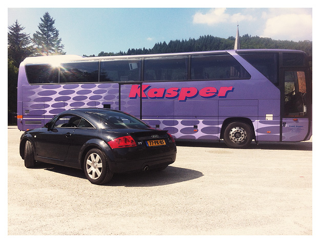 By only blinking my eyes three times, the sign "Willkommen in Deutschland" appeared and disappeared. Within "a poop and a fart" (*) we were on the Autobahn. Better known as the Audi Bahn. One Audi after another Audi. Logically all on the left. That is the "right" side of the road for you Australian, British and Japanese readers. And you Indian readers ... in case you care.