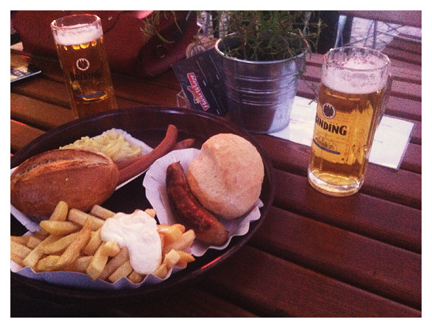 After exploring the hotel we decided to continue exploring the city centre of Frankfurt. The old town and the new town. And we drank some and we ate some. Typical German things: The "Frankfurter wurst".