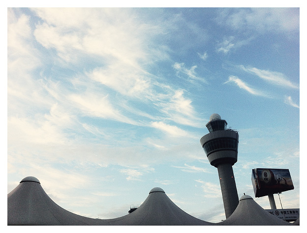 We entered the arrival hall without a welcoming committee waving balloons and banners. But we were welcomed by another typical treat: The Dutch sky. A low ceiling of slightly and softly erased clouds.