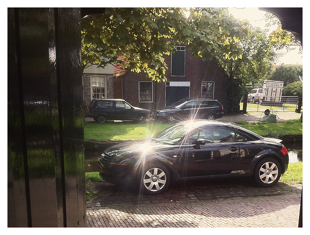 With a bit of Double Dutch chit chat in the car we went to Edam, which is not far from Amsterdam. To my dad's and mum's house. The deserted landscape rolled by the windows. No traffic on our way, which reminded me of that scene in Vanilla Sky. You know? Tom Cruise cruisin' all alone through the streets of New York in a Ferrari 250 GTO and stopping at an abandoned Times Square. Aaaaanyway ... at my dad's and mum's house we were welcomed with croissants, coffee and tea. And look, look, look ... there she was ... the TeeTee. Peeking from the parking space in front of the house.
