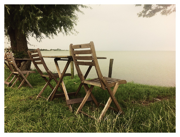 We went for lunch at my dad's and mum's house. A typical Dutch lunch though. Some milk and slices of bread with butter and "filet americain", which is pronounced with a French voice ... "phi-lay a-merry-can". After a fulfilling lunch we decided to cycle to the IJsselmeer. And while we were balancing on the beams of the pier, we watched the weather turn to worse. Like Snoop Dogg weather ... "drizzle".